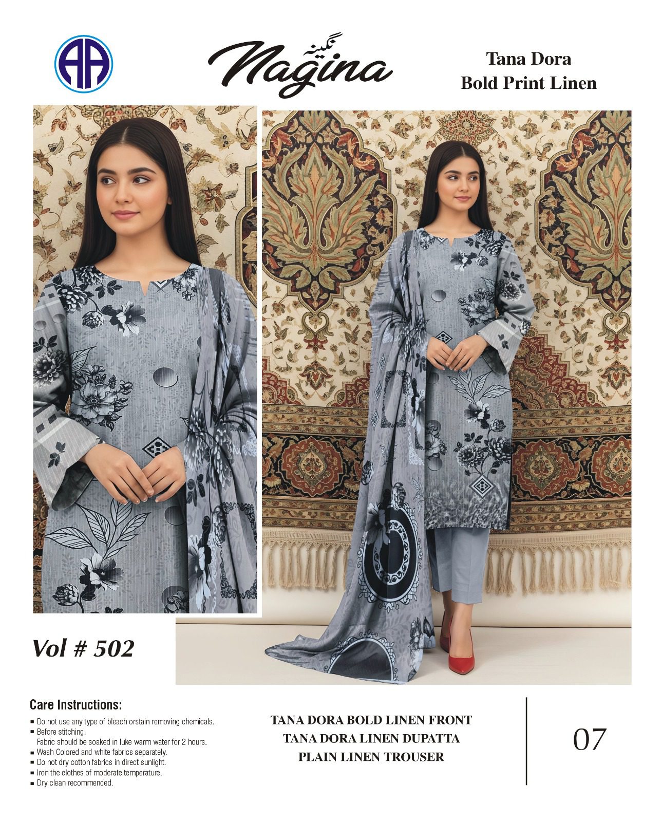 Tana Dora Bold Print Linen 3 PCS (Unstitched) Grey